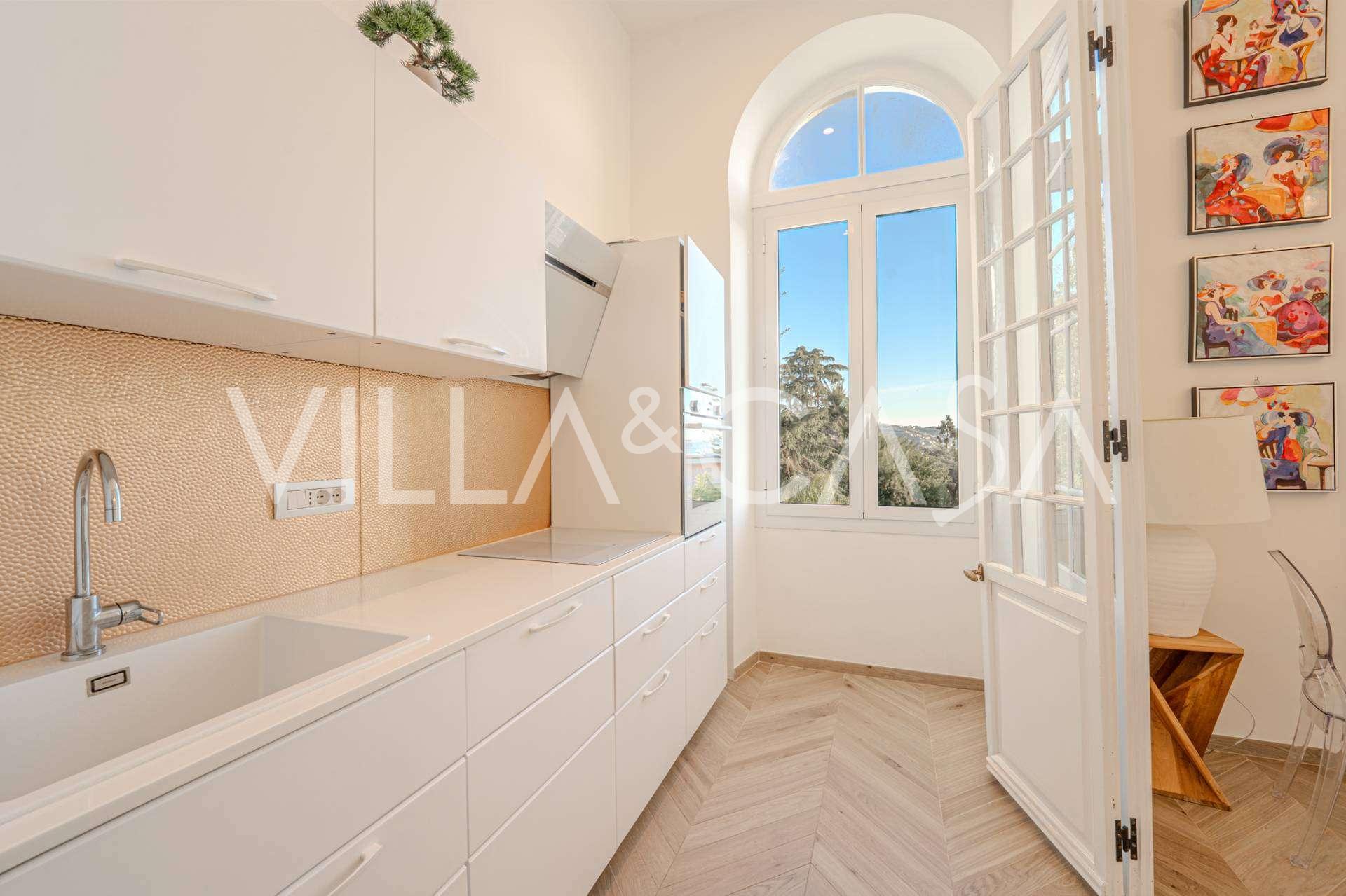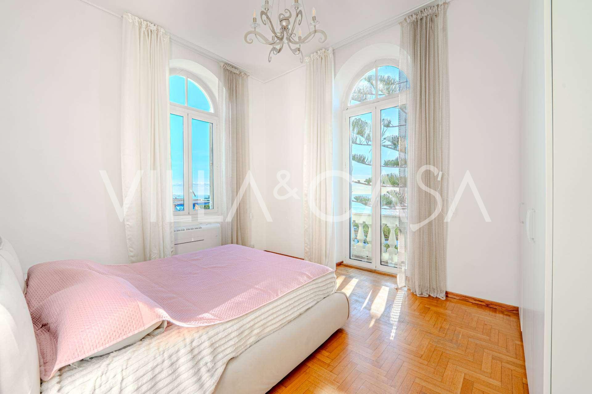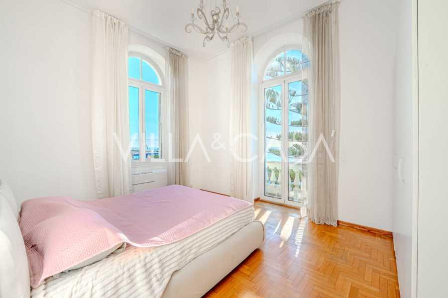 K pronájmu se nabízí dvoupokojový byt v Sanremu o rozloze 73 m2 s výhledem na moře. Nachází se ve druhém patře budovy s výtahem a zahrnuje obývací pokoj, ložnici s balkonem, kuchyň a koupelnu. Byt je ve výborném stavu, vybaven novými okny, klimatizací, má parketové podlahy a autonomní topení. Je plně zařízen. V ceně pronájmu je zahrnuto místo v garáži. Objekt je umístěn v uzavřeném rezidenčním komplexu s bazénem, zahradou, odpočinkovou zónou a místem pro grilování. Do centra města a k moři je to jen 7 minut pěšky.
