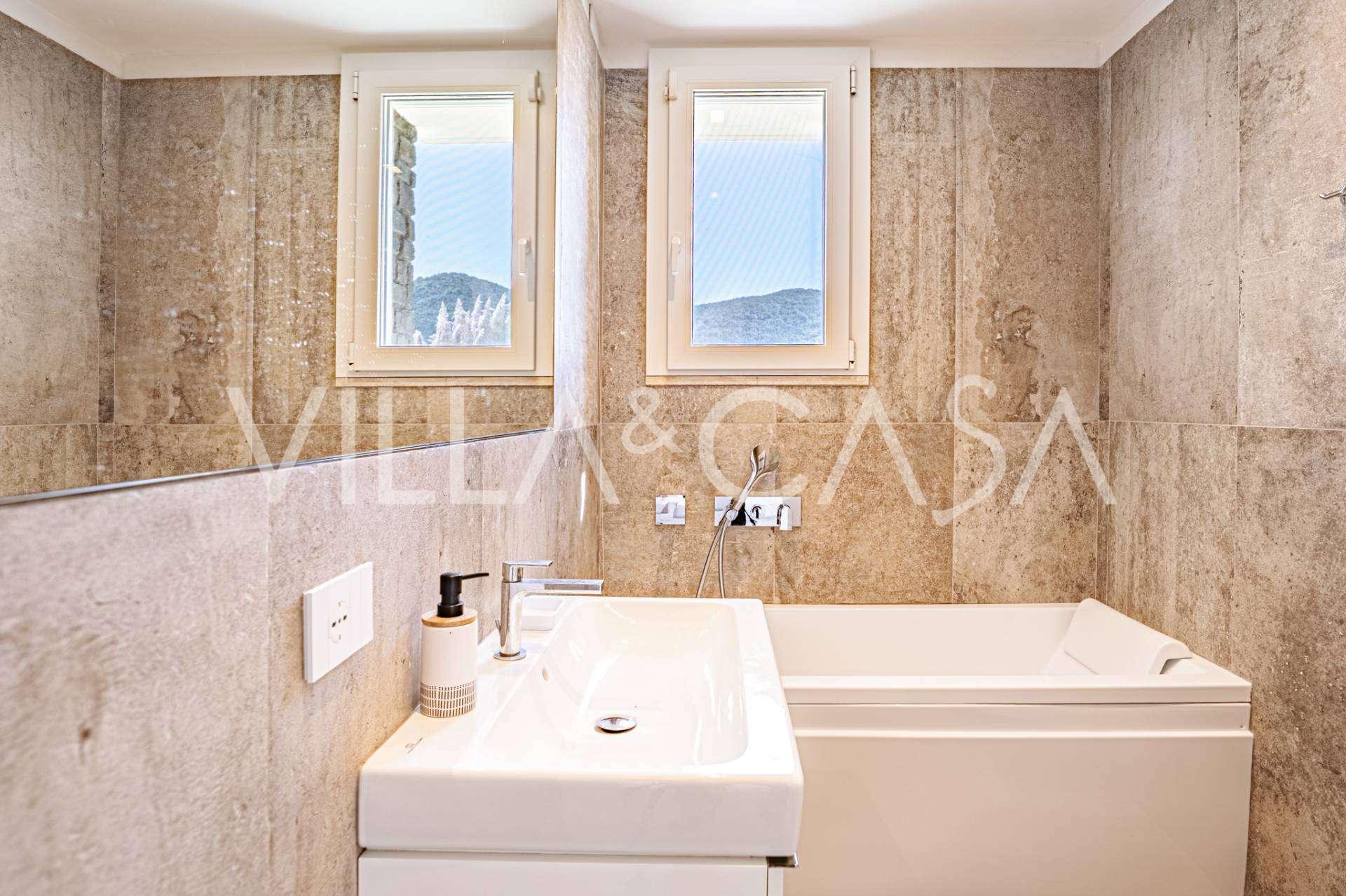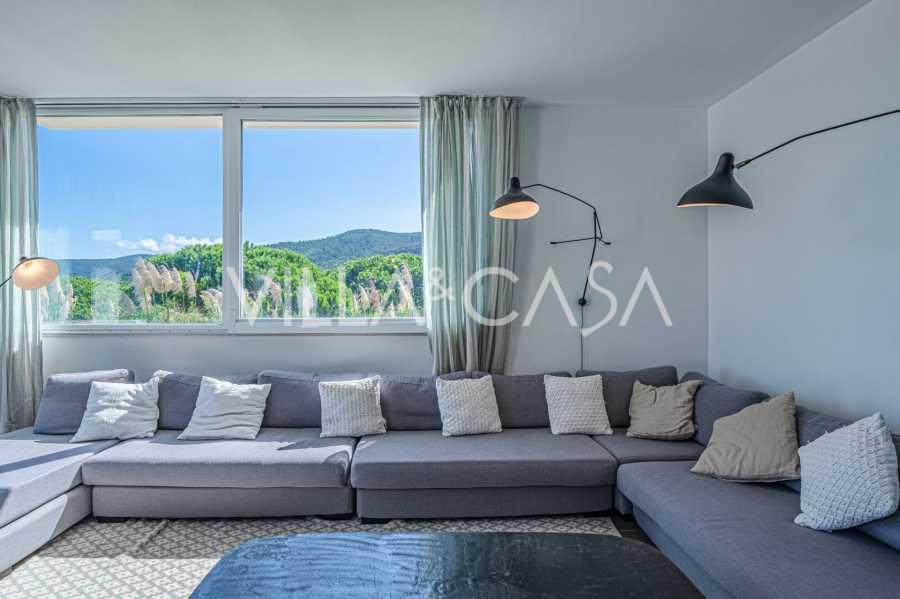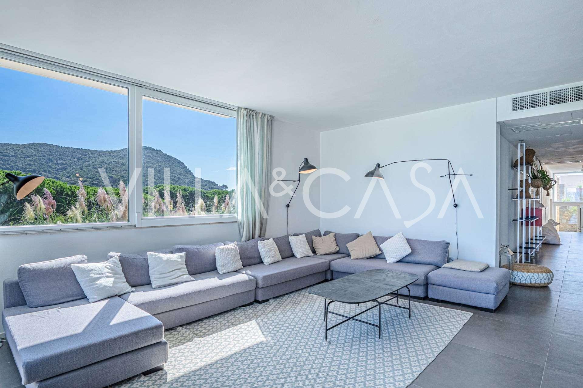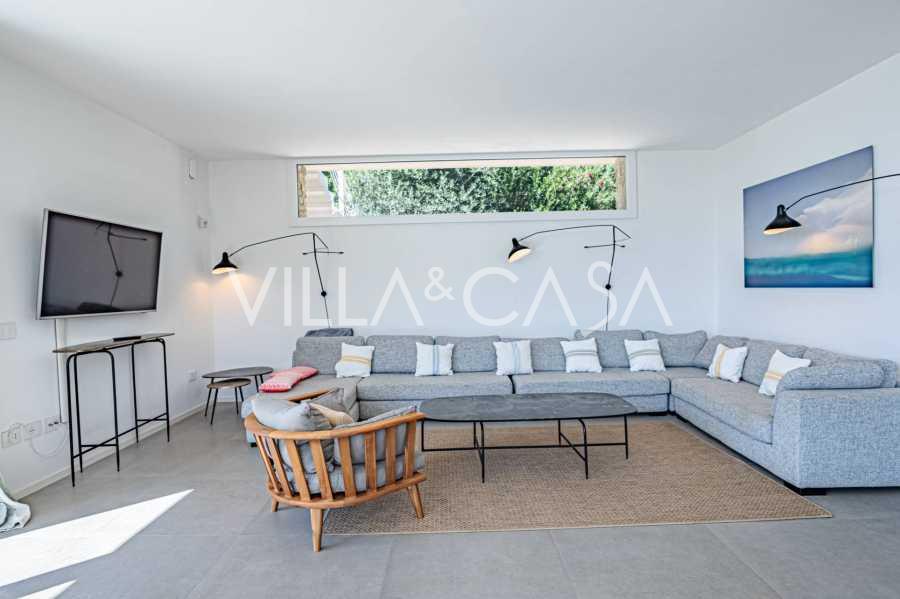Na spodní úrovni, v elegantním suterénu, se nacházejí prostorné terasy s výhledem na moře Punta Ala, navržené pro maximální využití denního světla, vytvářející útulnou atmosféru v každém pokoji.