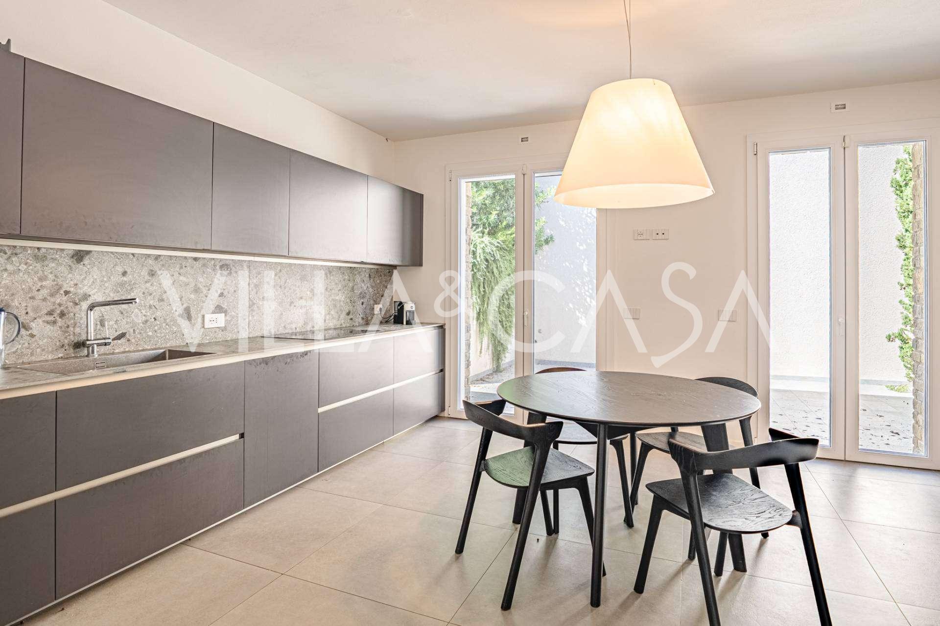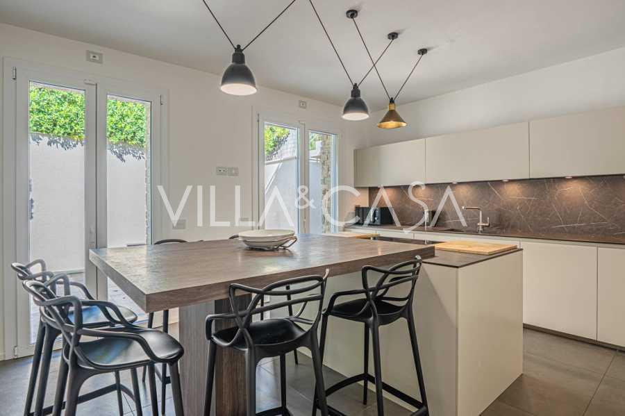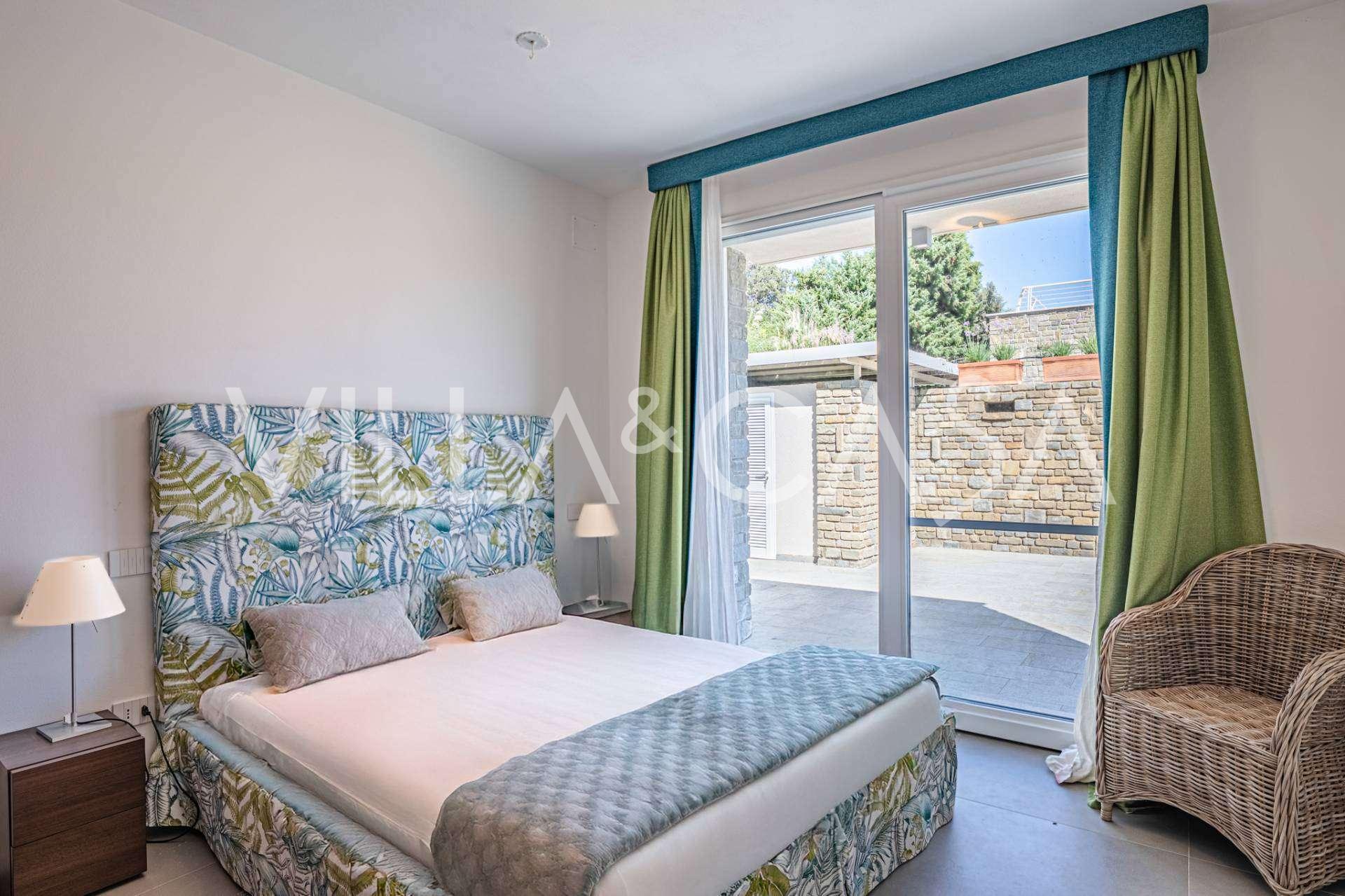 Na spodní úrovni, v elegantním suterénu, se nacházejí prostorné terasy s výhledem na moře Punta Ala, navržené pro maximální využití denního světla, vytvářející útulnou atmosféru v každém pokoji.