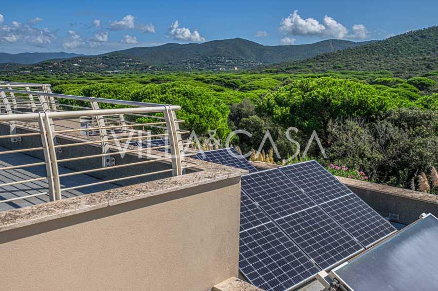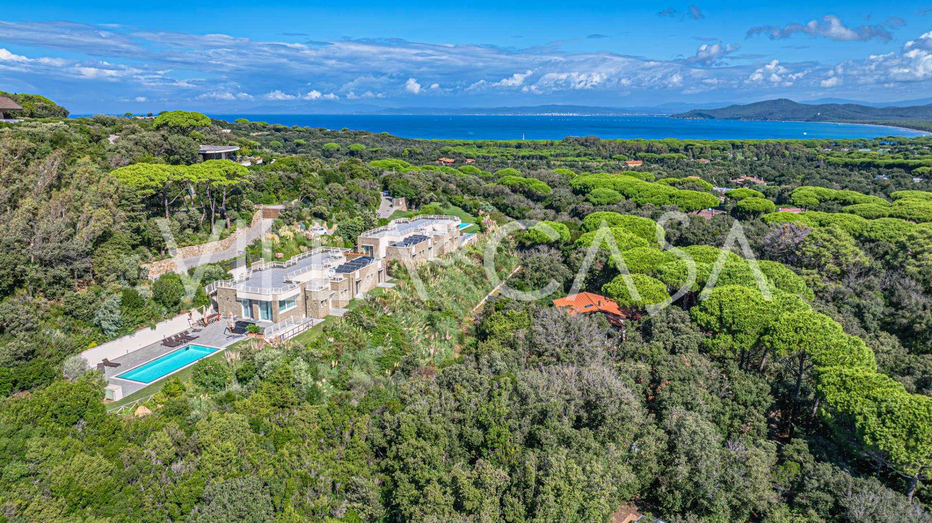 Tato úžasná vila, nedávno postavená v prestižní oblasti Poggettone v Punta Ala, představuje jedinečnou kombinaci moderní architektury, přírody a inovativních technologií. Vila má rozlohu přibližně 300 metrů čtverečních a je obklopena soukromým parkem o rozloze 4000 metrů čtverečních s úchvatným panoramatickým bazénem. Nemovitost je skutečným klenotem luxusu v srdci toskánské Maremmy.