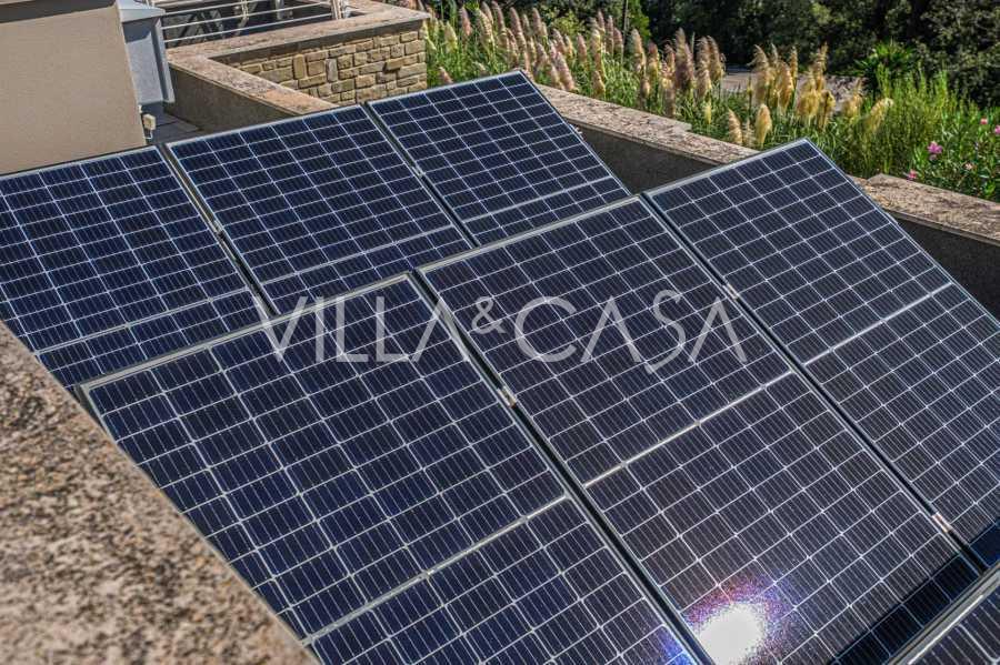 Vila, postavená v roce 2010 s využitím moderních stavebních technologií, zajišťuje vynikající komfort a energetickou účinnost. Moderní okna garantují klid a soukromí, zatímco solární systém zajišťuje teplou vodu a automatické zavlažování zahrady. Systém domácí automatizace umožňuje snadné ovládání všech funkcí domu.