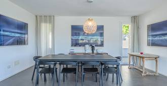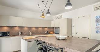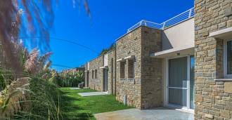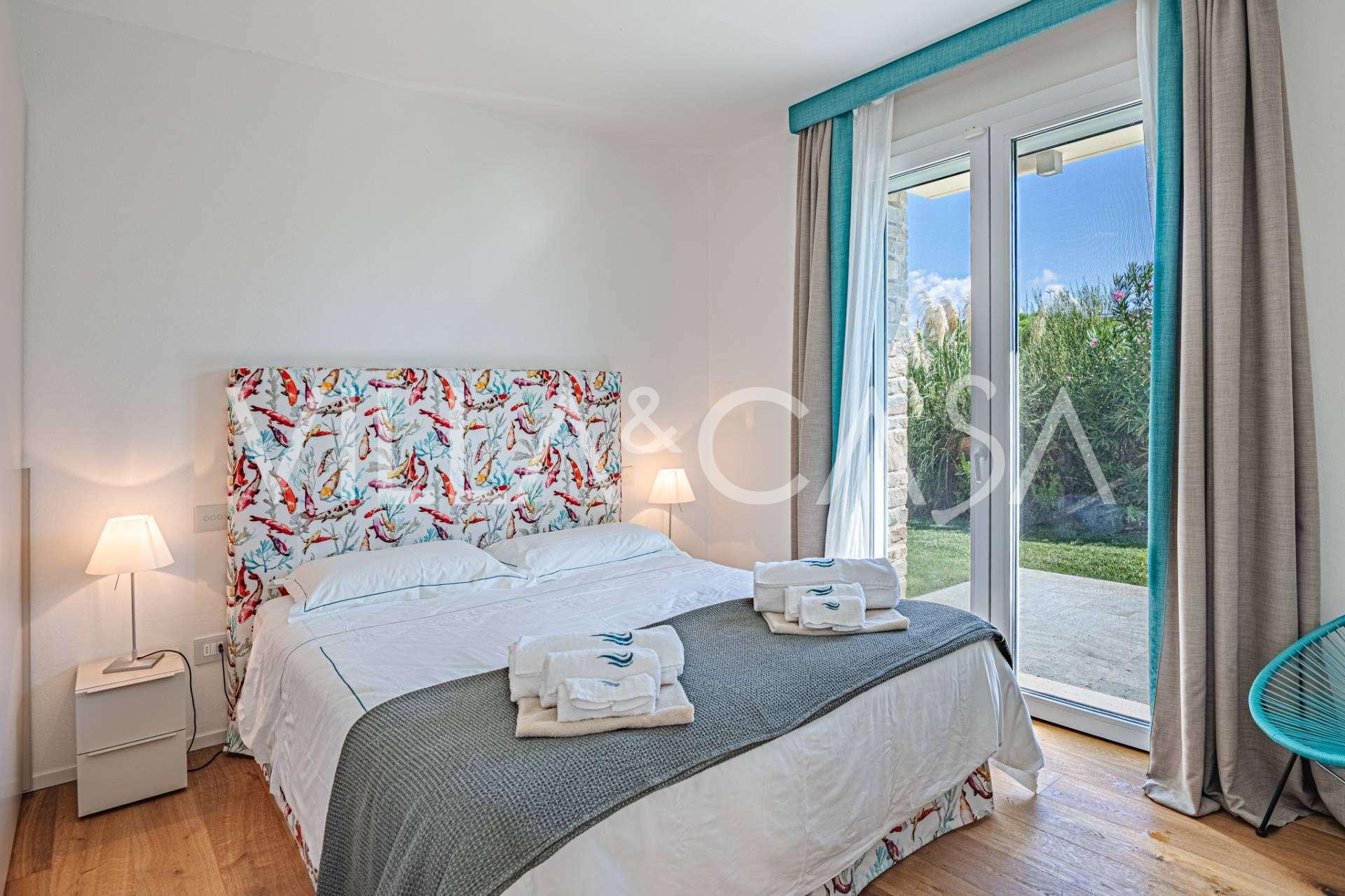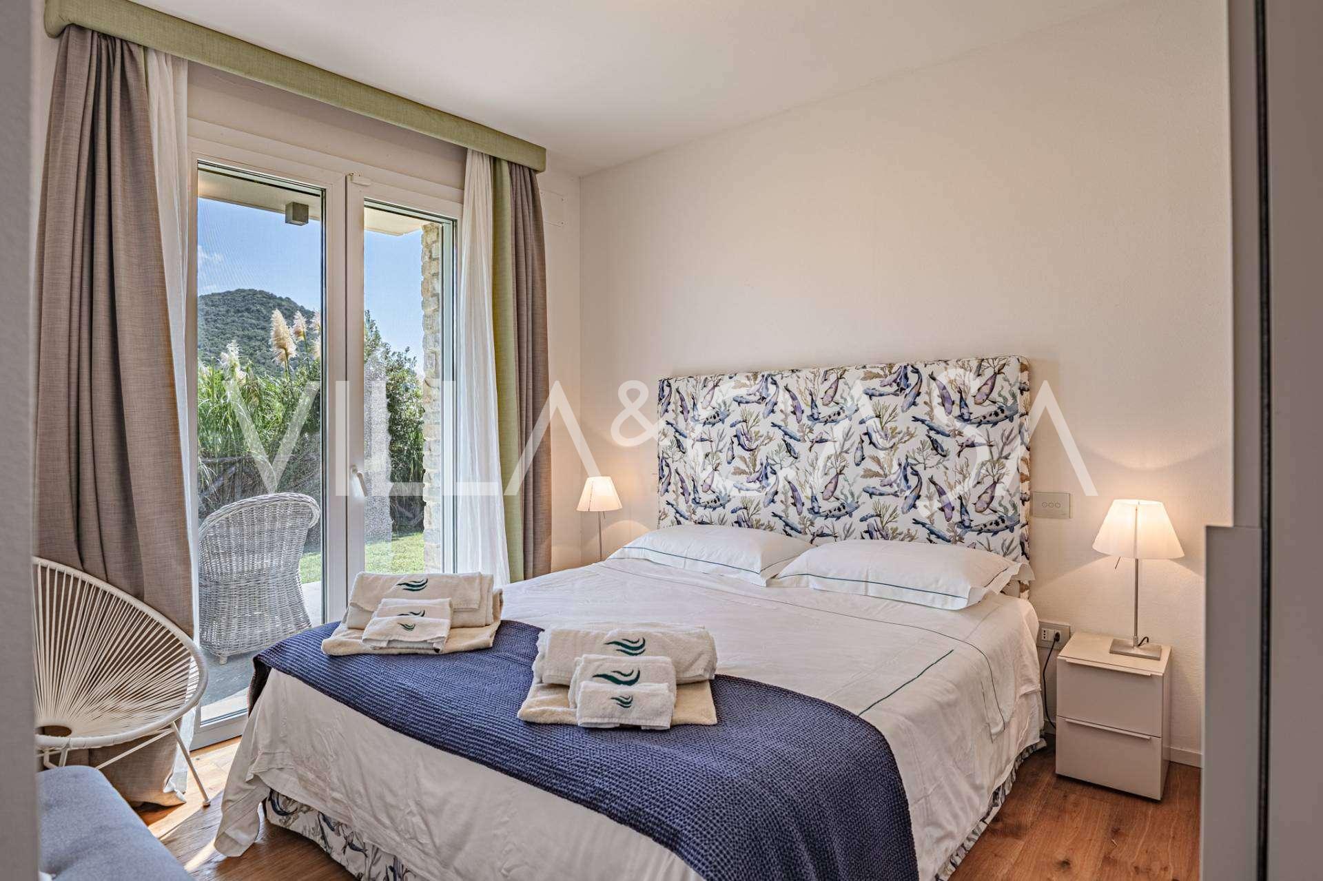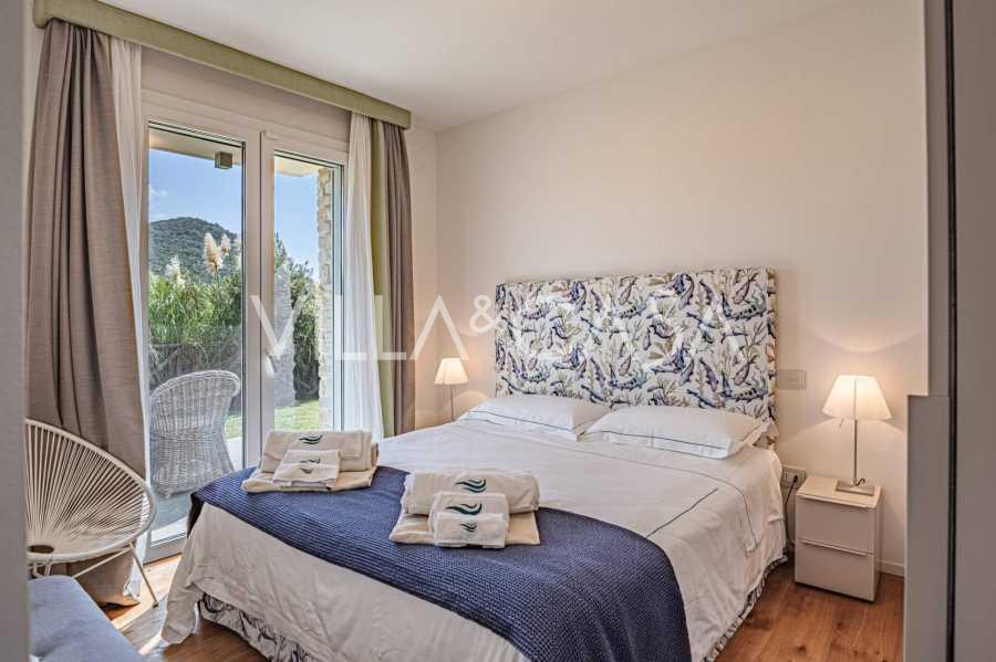 Fasády z kamene a omítky jsou harmonicky integrovány do středomořské krajiny. Světlý obývací pokoj s velkými okny a slunečním osvětlením plynule přechází do kuchyně s jídelnou s výhledem na vnitřní dvůr. Spací zóna zahrnuje čtyři dvoulůžkové a jednu jednolůžkovou ložnici, každá s vlastní koupelnou.