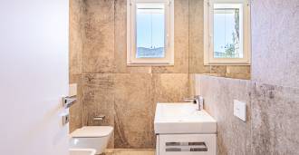Vysoká úroveň povrchových úprav: vytříbené parkety v ložnicích, elegantní dlažba v obývacím pokoji a světlá barevná paleta, podtrhující jas interiérů.