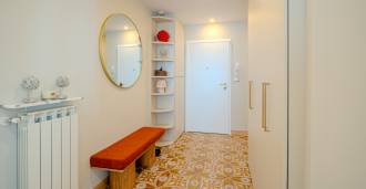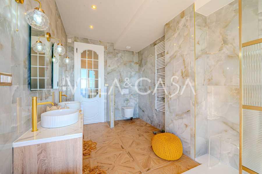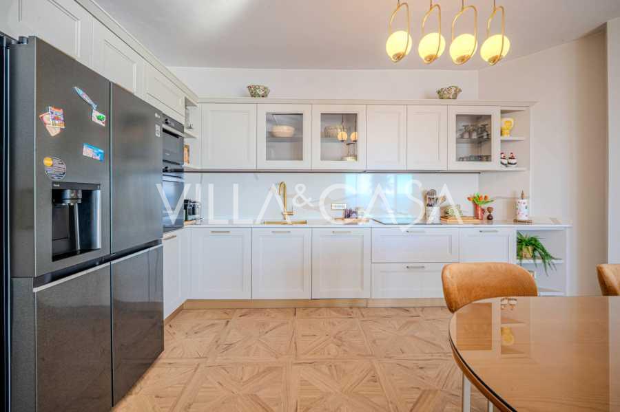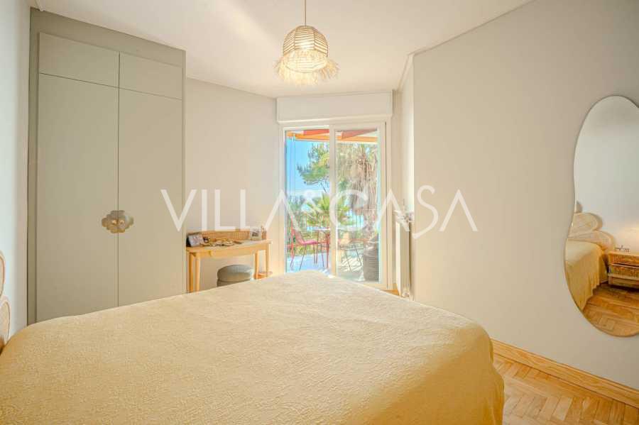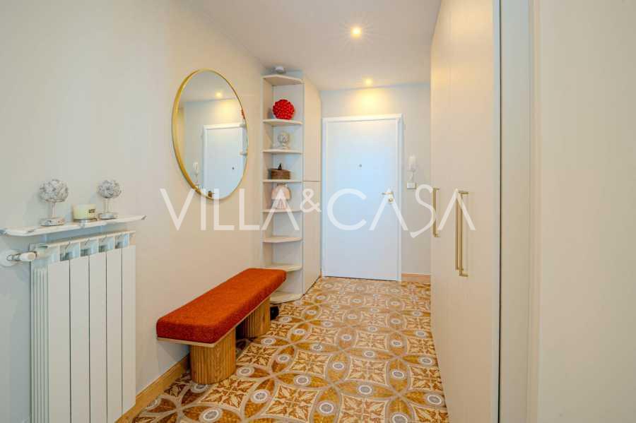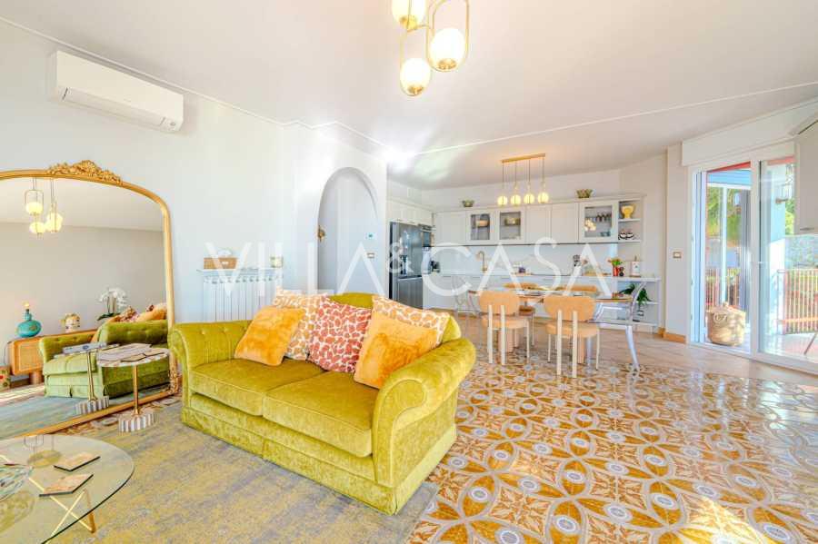 Vnitřní výzdoba bytu kombinuje moderní komfort s atmosférou elegantního útulí. Prostorná hala vede do nádherného obývacího pokoje s otevřenou kuchyní, odkud se nabízí dechberoucí výhled na moře. Z obývacího pokoje je přístup na dva balkony, kde si můžete vychutnat mořský vánek a výhled na Ligurské pobřeží.