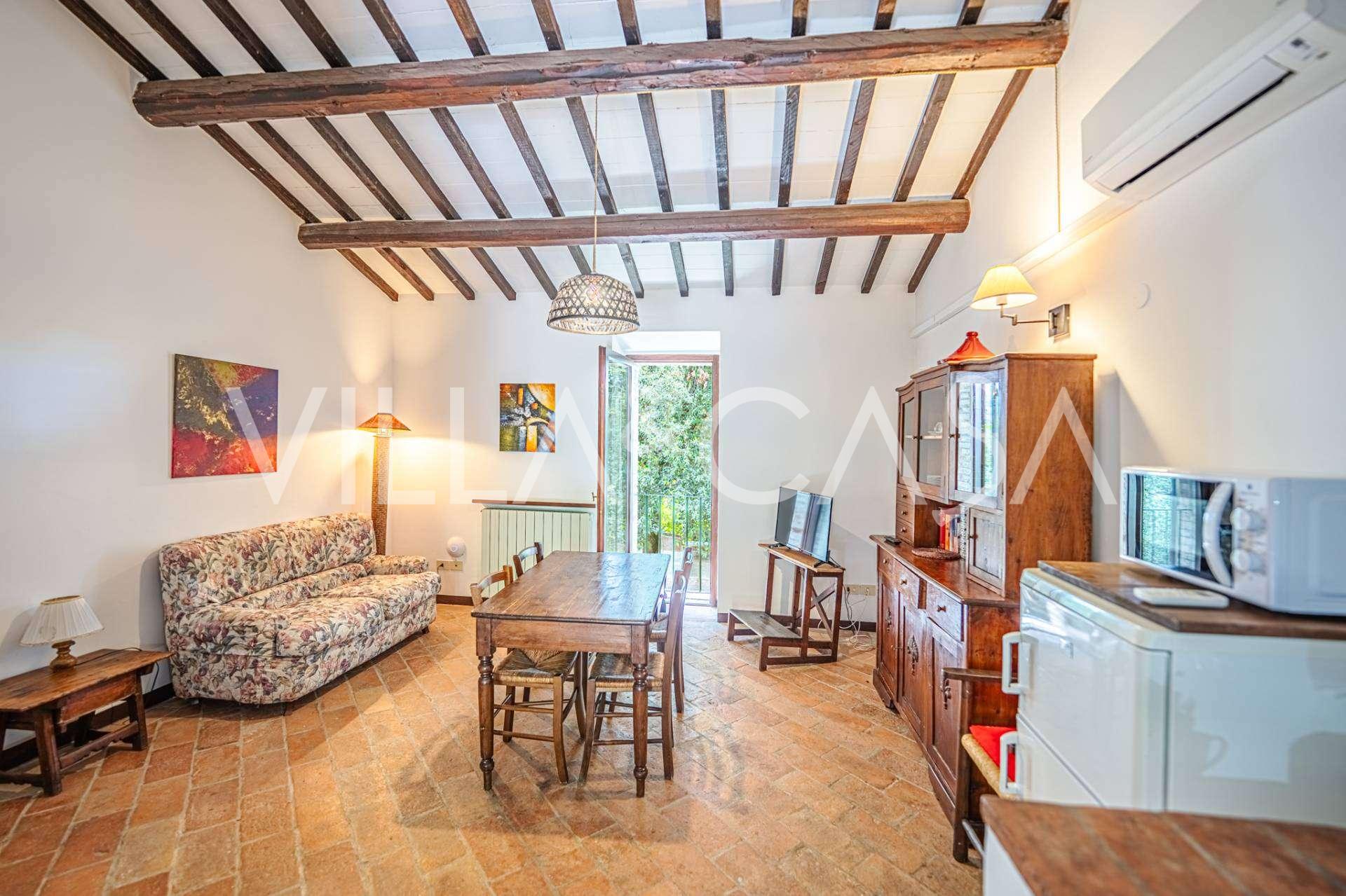 Interiéry vily uchovávají otisky tisícileté historie: klenuté stropy s okouzlující cihlovou výzdobou nebo trámy z přírodního dřeva v tradičním rustikálním stylu. Podlahy jsou zcela položeny ručně vyrobenými terakotovými dlaždicemi. V jednotlivých místnostech se zachovaly starobylé malby, oltáře a výklenky.