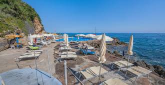 Hostům je k dispozici krytý bazén o délce přibližně 25 metrů s vyhřívanou mořskou vodou. Hotel rovněž disponuje soukromou pláží s přímým přístupem k moři, která zahrnuje bazén s mořskou vodou, zónu s lehátky a slunečníky, a také oblázkovou pláž, určenou pro 100–110 osob, jak pro hosty hotelu, tak pro návštěvníky zvenčí. V letní sezóně se otevírá snack bar s lehkými občerstveními a také centrum krásy a talasoterapie.