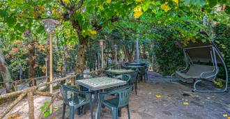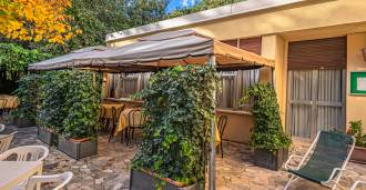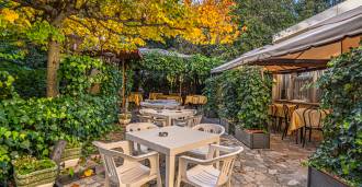 Restaurace hotelu zaslouží zvláštní pozornost: elegantní vnitřní sál pojme 120 hostů (dalších 30 míst na terase) a nabízí vytříbenou kuchyni a bezchybný servis. Malebná terasa pod širým nebem, utopená v zeleni, umožňuje vychutnat si jídlo za zvuků přírody. Zde se také nachází bar, odpočinková zóna, solárium, otevřený krb pro barbecue, dětské hřiště, hřiště na bocce a soukromé parkoviště.