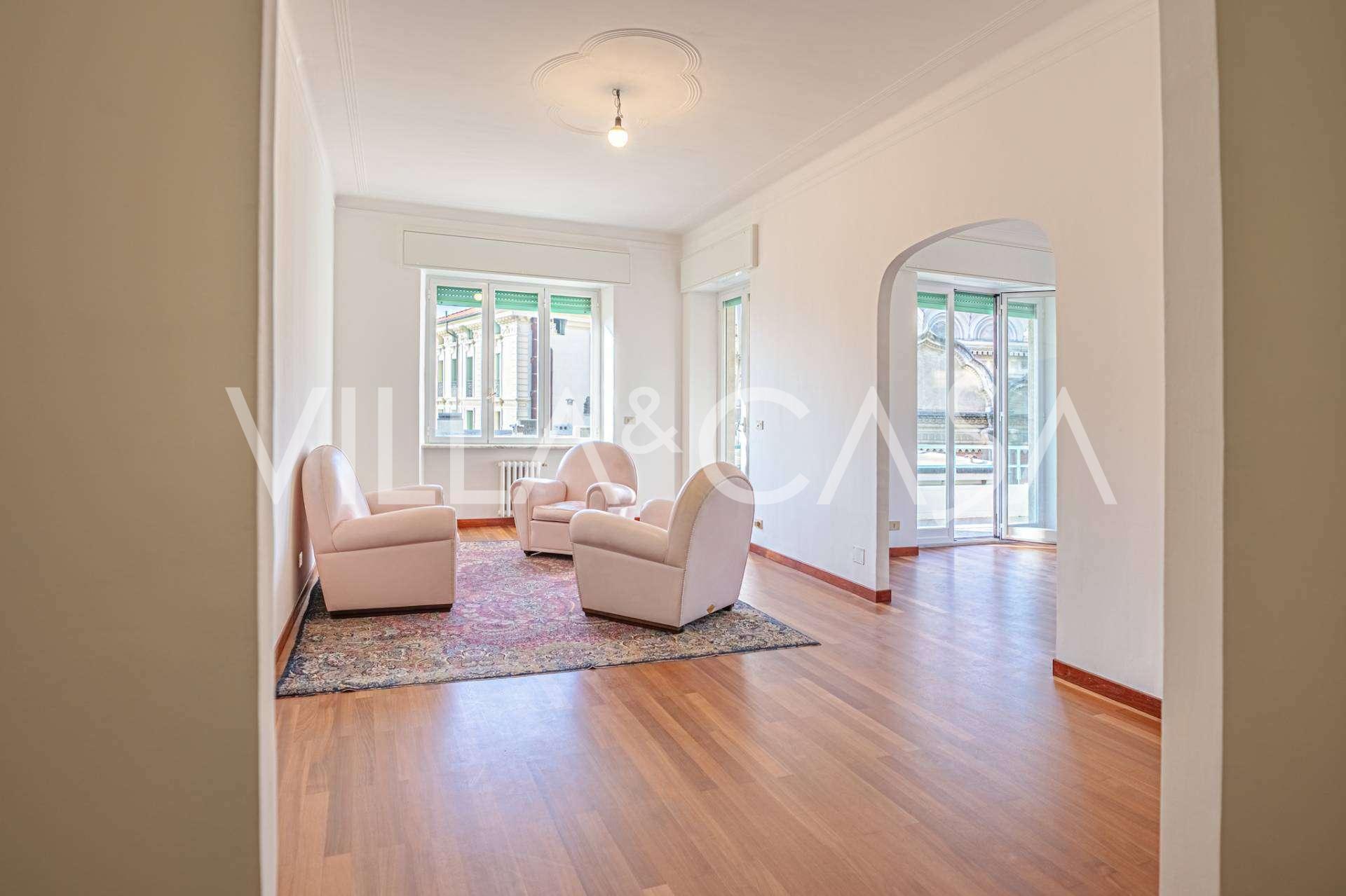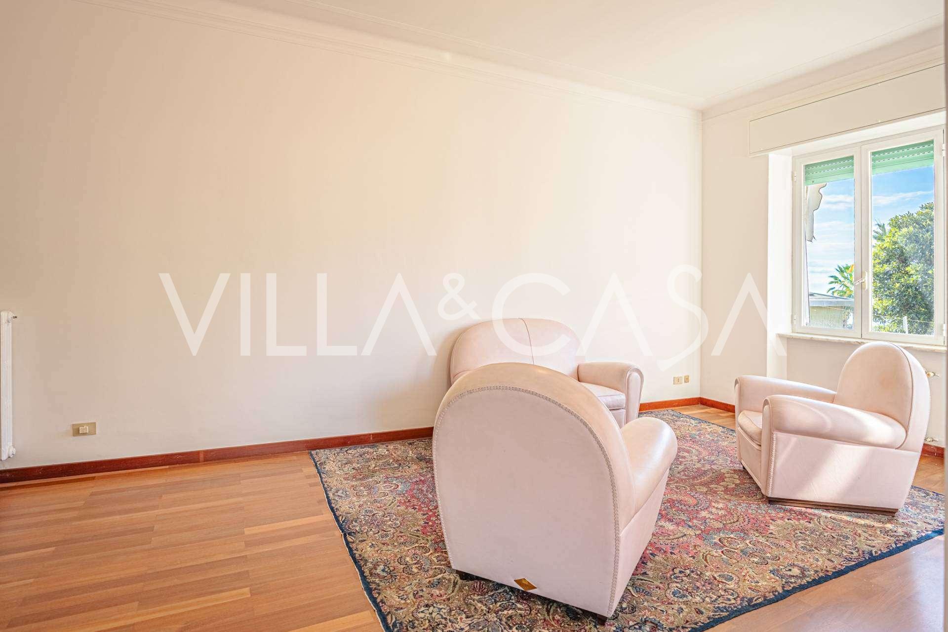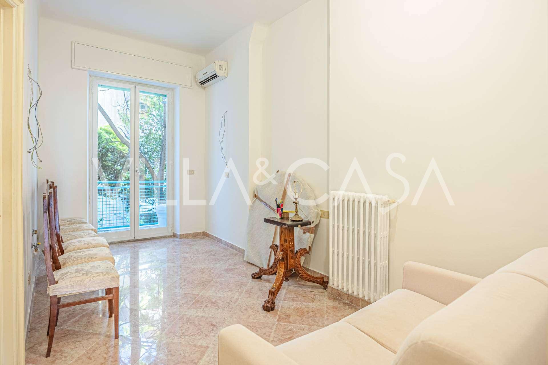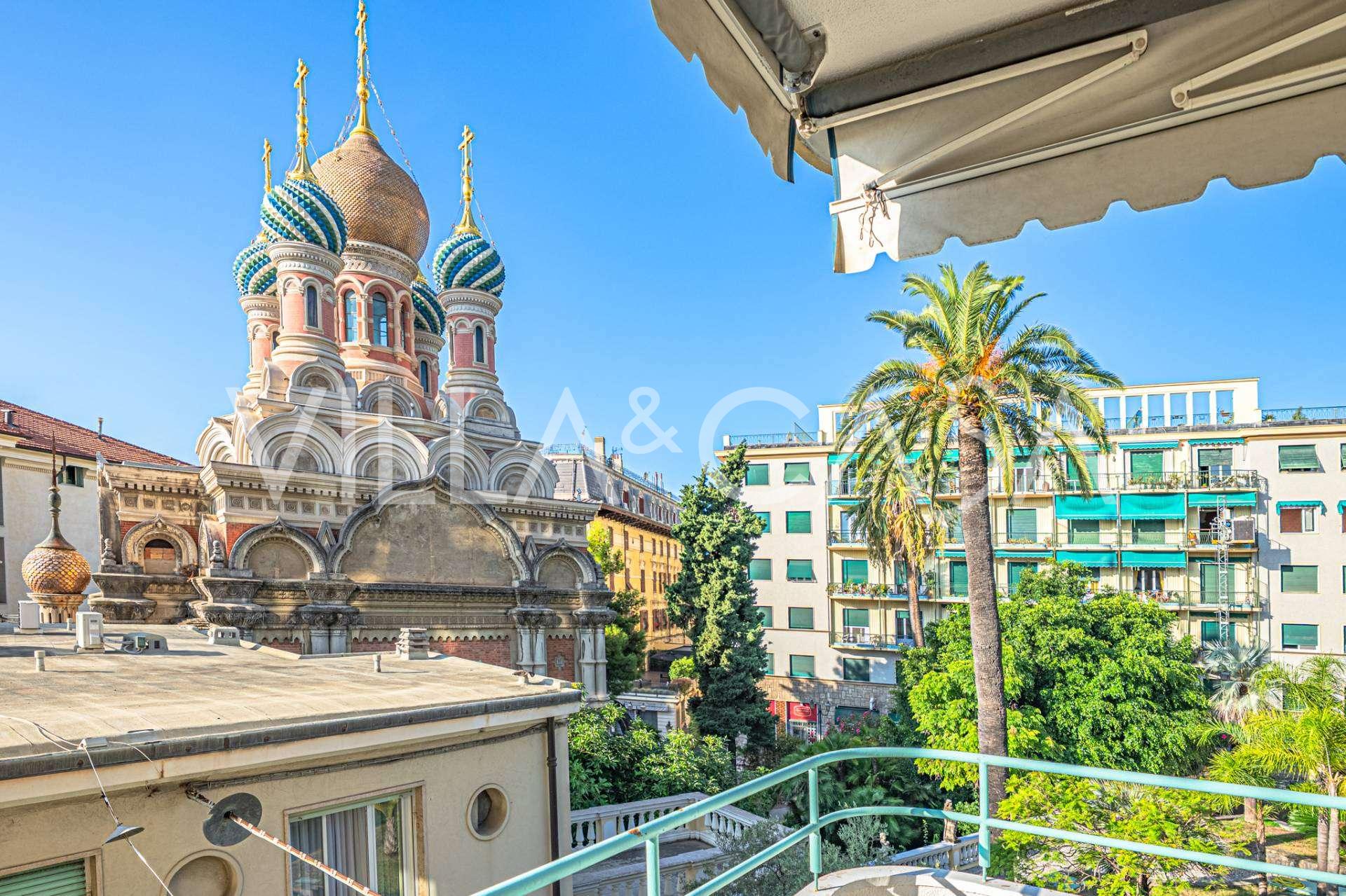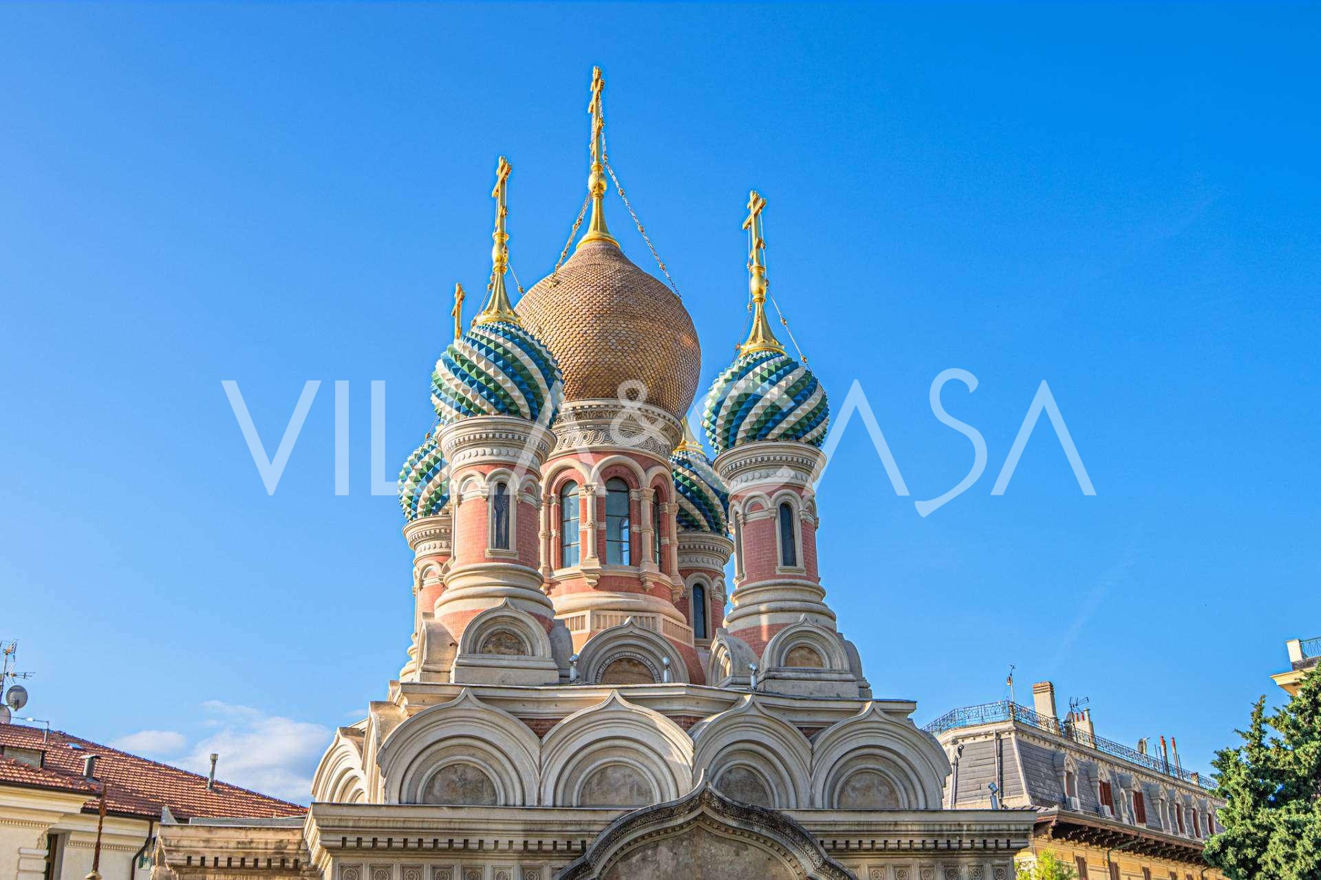Exkluzivní třípokojový byt se nachází v srdci Sanrema, naproti známému Ruskému kostelu, v prestižním rezidenčním komplexu s upraveným územím. Prostorná rezidence o rozloze 134 m² se nachází ve druhém patře a je plná světla díky panoramatickým oknům a slunné terase s výhledem na moře a jedinečným architektonickým souborem.