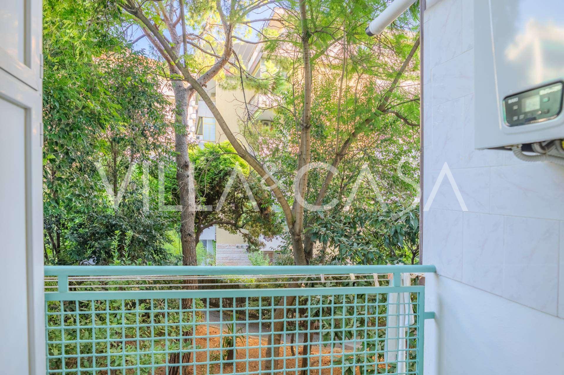 Byt je kompletně zrekonstruován s využitím vysoce kvalitních materiálů, zachovává si italskou eleganci a přidává moderní komfort. Prostorná hala vede do elegantního dvojitého obývacího pokoje s 3,5 metru vysokými stropy a východem na terasu, dvě ložnice zajišťují klid a soukromí, zatímco dvě moderní koupelny poskytují maximální pohodlí, samostatná kuchyň s balkonem.