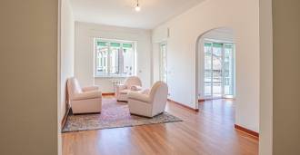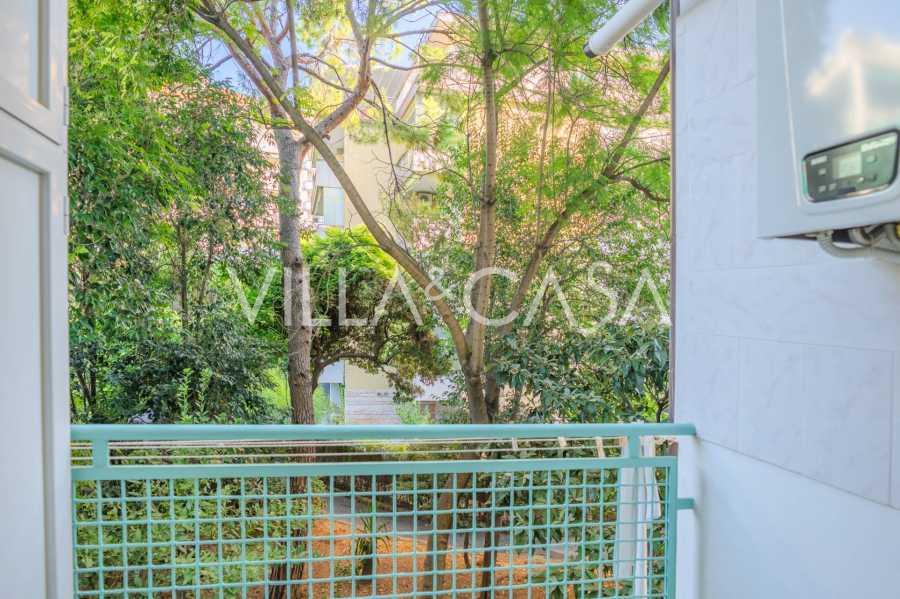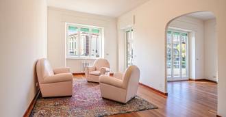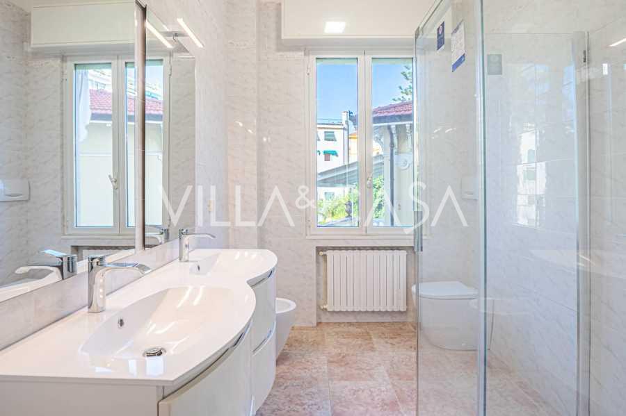 Byt je kompletně zrekonstruován s využitím vysoce kvalitních materiálů, zachovává si italskou eleganci a přidává moderní komfort. Prostorná hala vede do elegantního dvojitého obývacího pokoje s 3,5 metru vysokými stropy a východem na terasu, dvě ložnice zajišťují klid a soukromí, zatímco dvě moderní koupelny poskytují maximální pohodlí, samostatná kuchyň s balkonem.