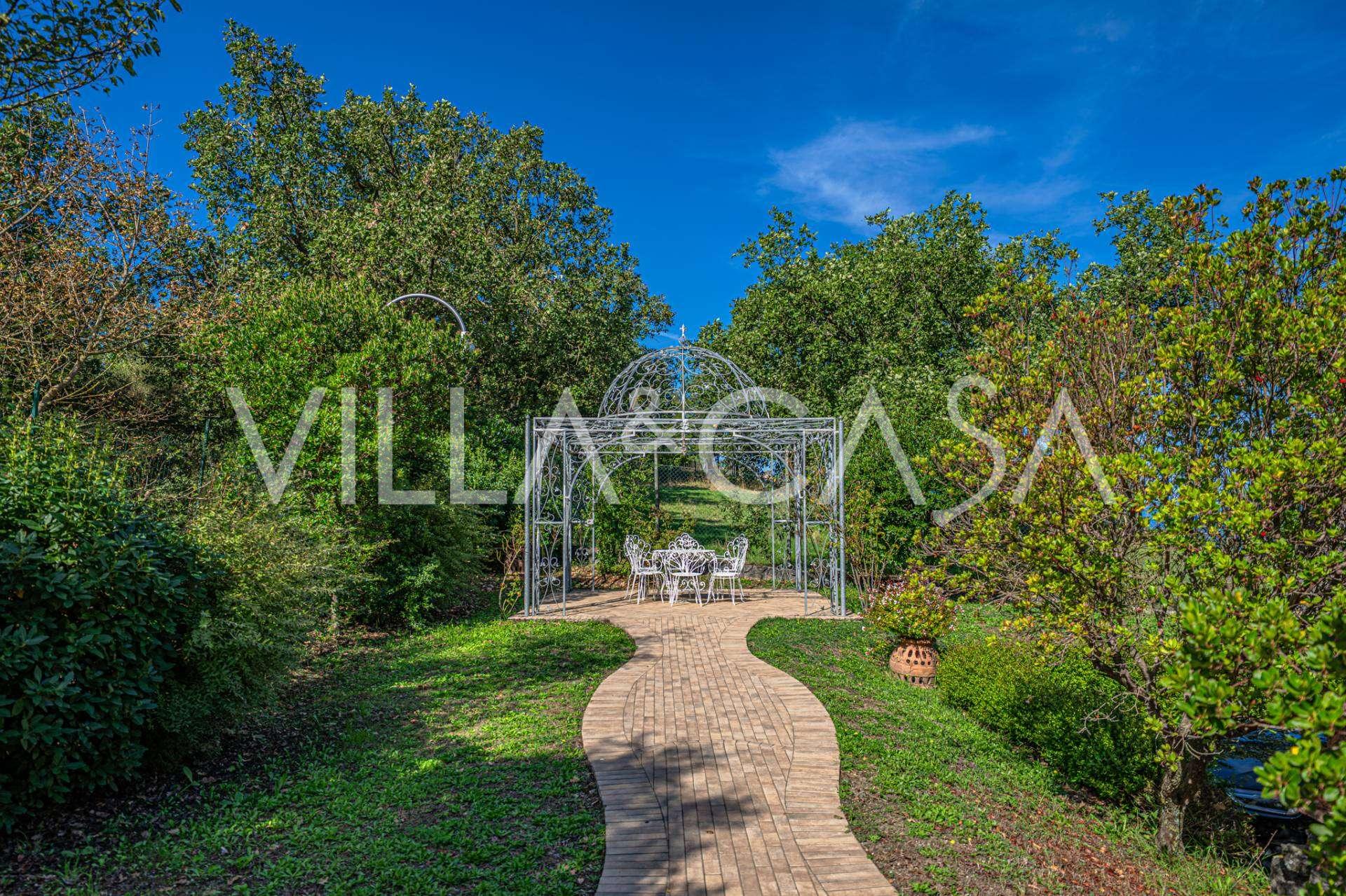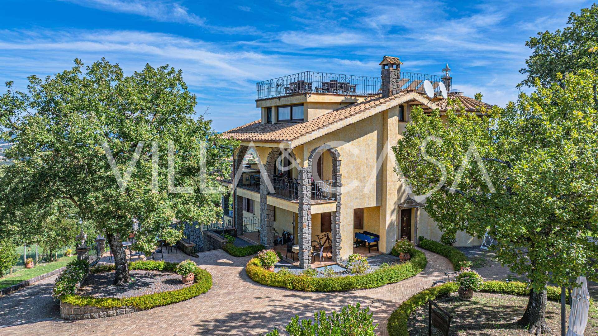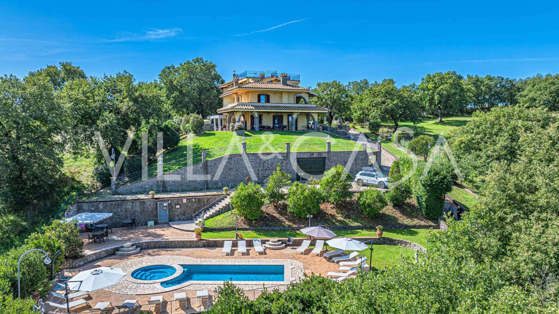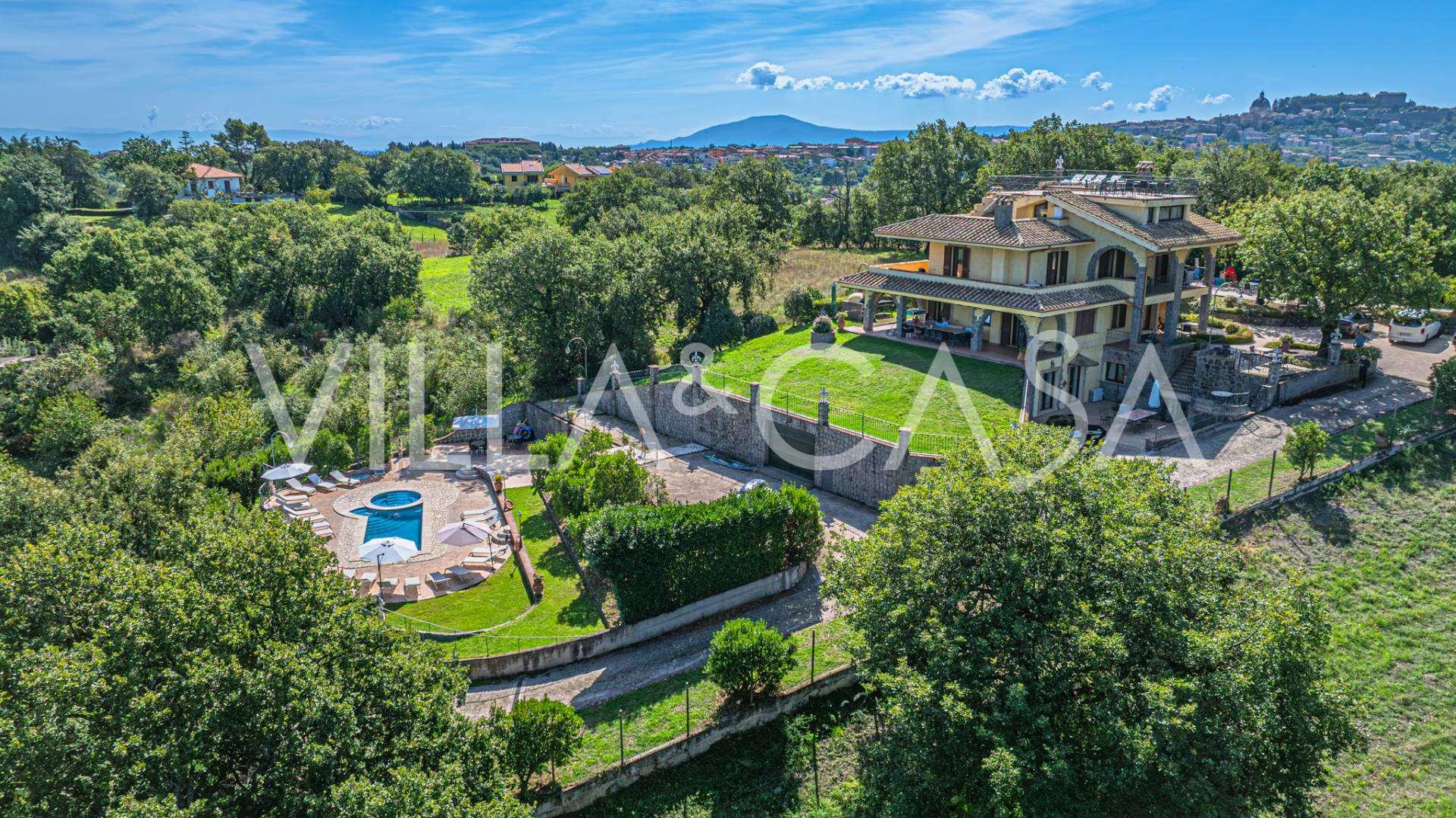 Vilu obklopuje prostorný park o rozloze 13 000 m2, kde století duby, středomořská vegetace a ovocný sad vytvářejí atmosféru naprostého soukromí. Pozemek je zcela oplocen a vybaven vlastním zdrojem vody. Ze sluneční terasy je výhled na Tyrhénské moře, které je vzdáleno jen půl hodiny jízdy, a atraktivní Montefiascone s proslulým vínem Est! Est!! Est!!! se nachází v docházkové vzdálenosti.