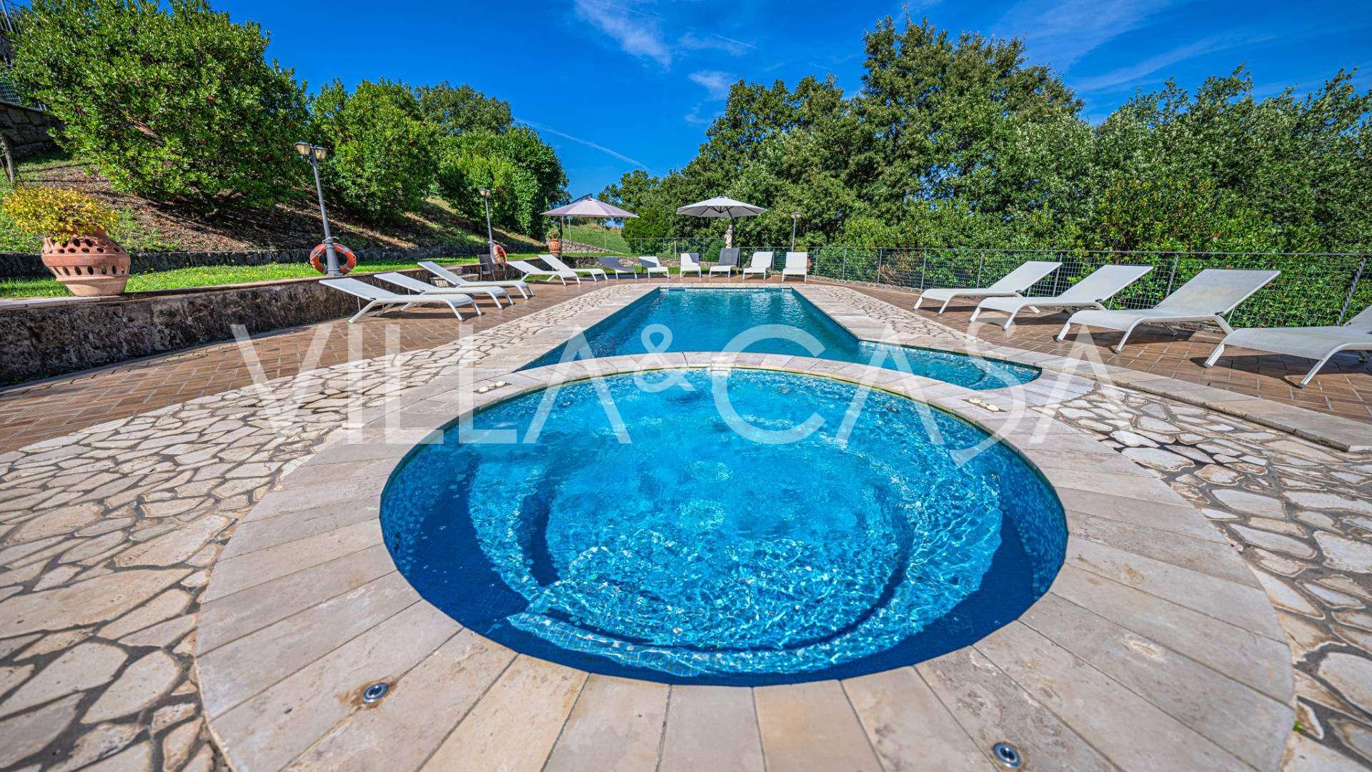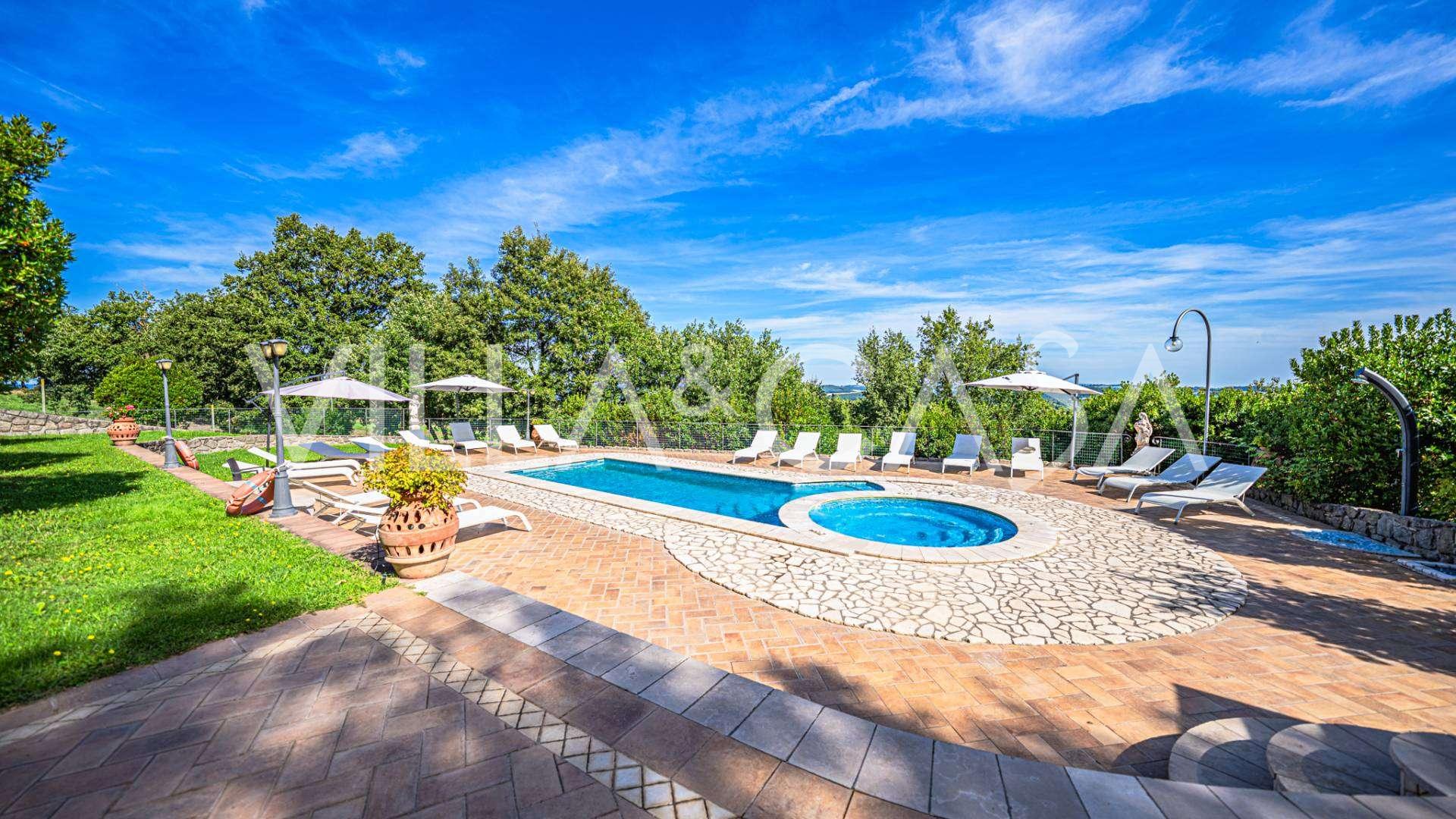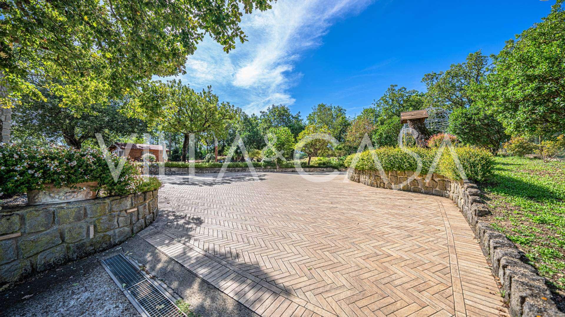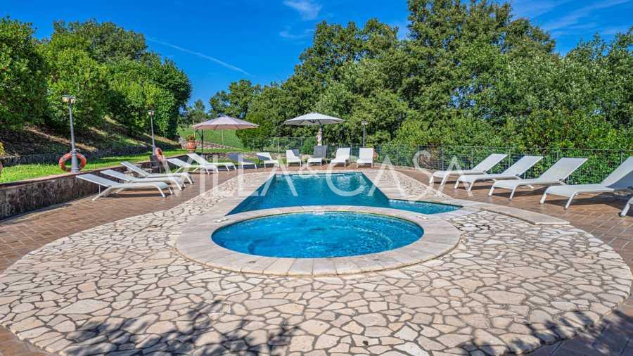 Vilu obklopuje prostorný park o rozloze 13 000 m2, kde století duby, středomořská vegetace a ovocný sad vytvářejí atmosféru naprostého soukromí. Pozemek je zcela oplocen a vybaven vlastním zdrojem vody. Ze sluneční terasy je výhled na Tyrhénské moře, které je vzdáleno jen půl hodiny jízdy, a atraktivní Montefiascone s proslulým vínem Est! Est!! Est!!! se nachází v docházkové vzdálenosti.