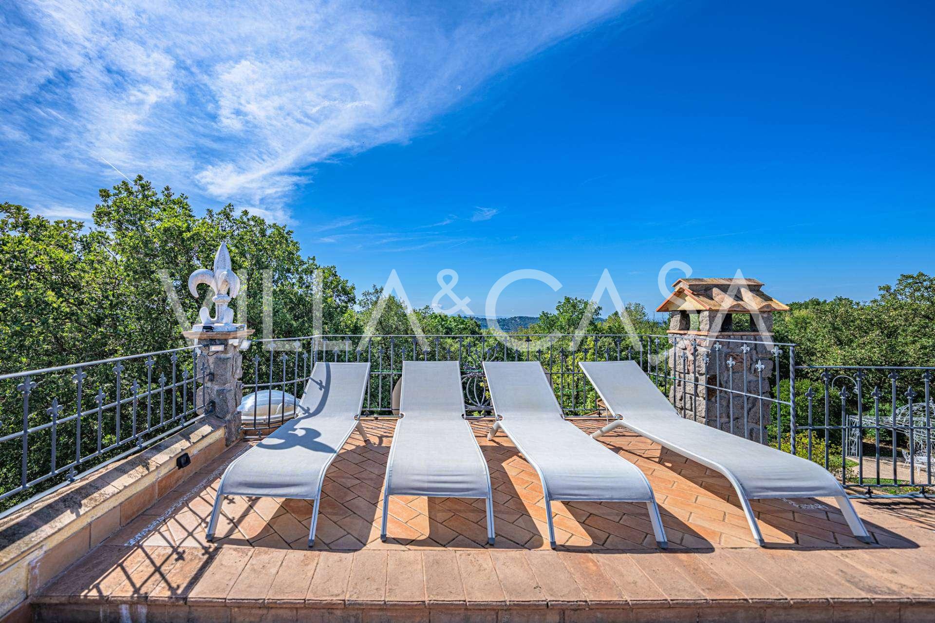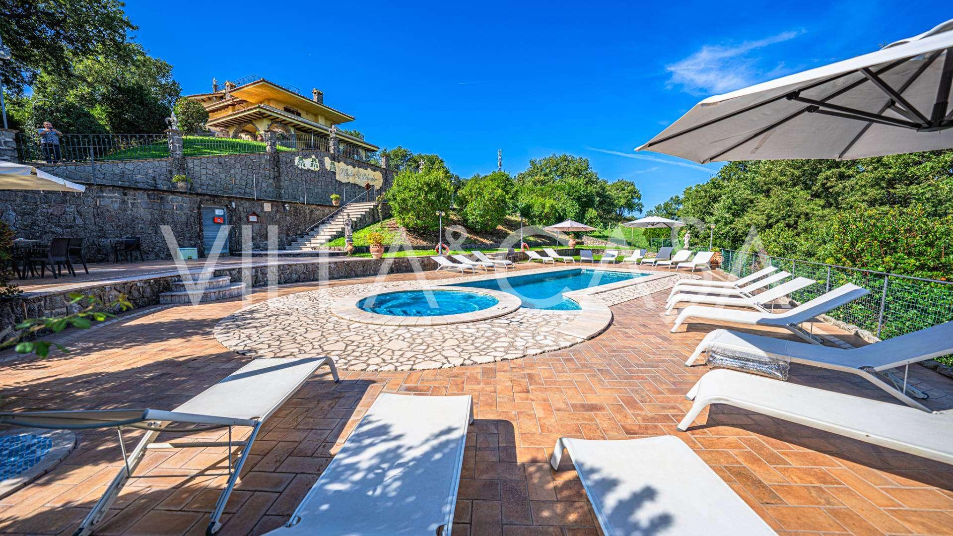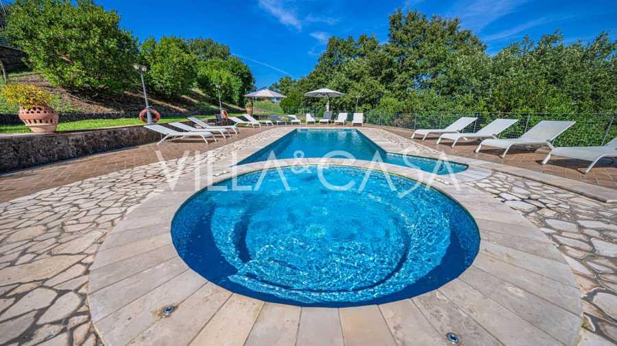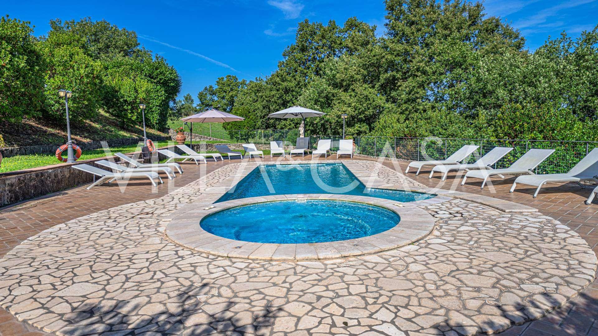 Vilu obklopuje prostorný park o rozloze 13 000 m2, kde století duby, středomořská vegetace a ovocný sad vytvářejí atmosféru naprostého soukromí. Pozemek je zcela oplocen a vybaven vlastním zdrojem vody. Ze sluneční terasy je výhled na Tyrhénské moře, které je vzdáleno jen půl hodiny jízdy, a atraktivní Montefiascone s proslulým vínem Est! Est!! Est!!! se nachází v docházkové vzdálenosti.