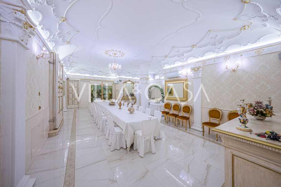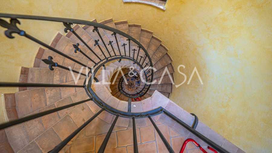 Architektura vily spojuje tradiční italské materiály, jako je terakota, dřevo a peperinový kámen, s moderními technologiemi pro pohodlné bydlení. Rozloha rezidence činí 450 m2 a zahrnuje deset elegantních ložnic, devět koupelen, několik kuchyní a jídelen, barokní přijímací sál, vinný sklep a prostorné terasy s okouzlujícími výhledy. Každá místnost je vybavena individuálními systémy vytápění a klimatizace, Wi-Fi a satelitní televizí, a celá oblast je chráněna moderním kamerovým systémem.