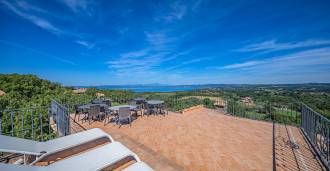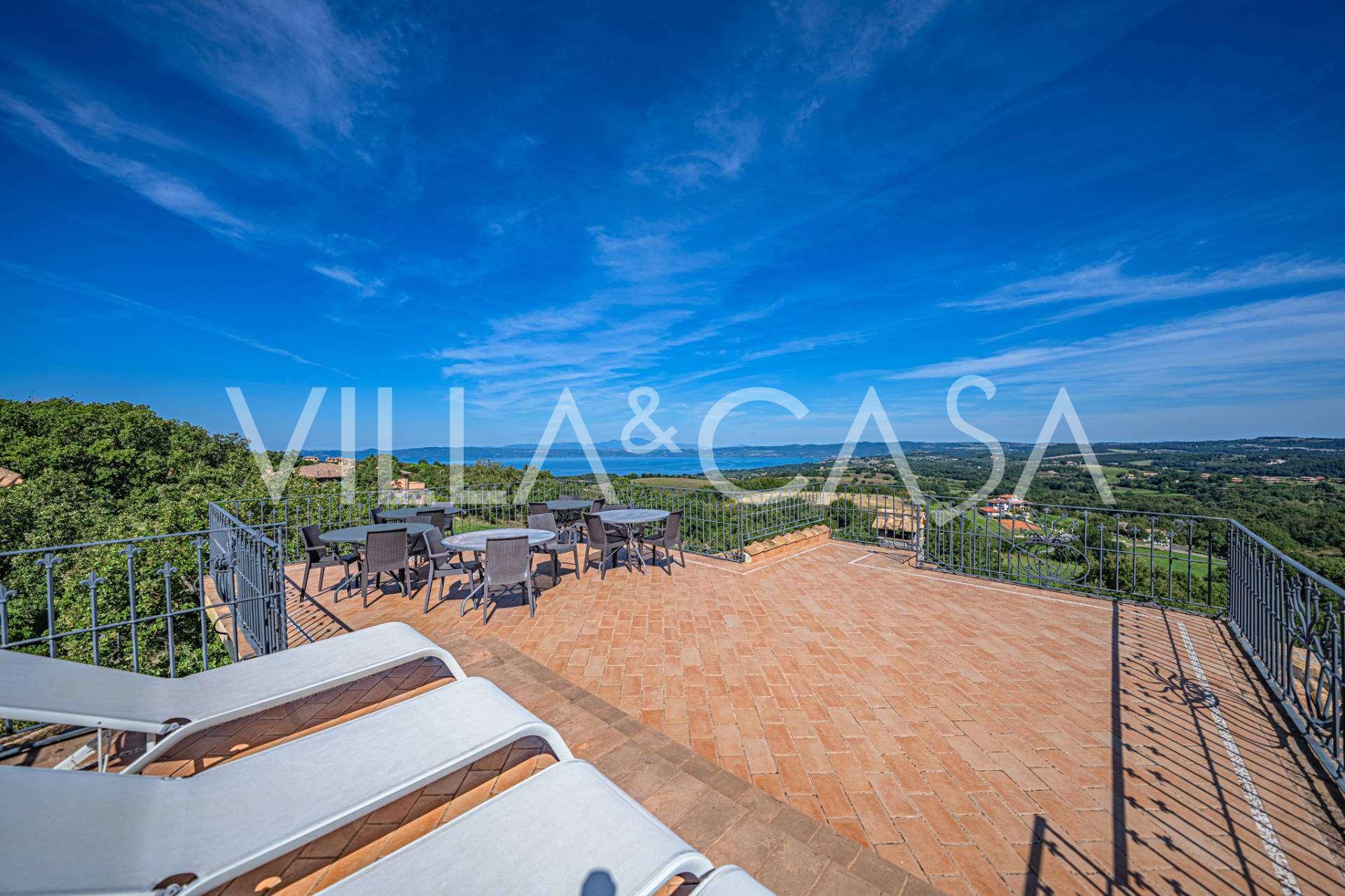 Na prodej je luxusní vila, která se nachází na vrcholu kopce s výhledem na jezero Bolsena a jemné obrysy kopců Lazia. Každý východ a západ slunce se zde mění v opravdové umělecké představení a mírné klima v kombinaci s lehkým večerním větříkem přináší pocit svěžesti a klidu po celý rok.