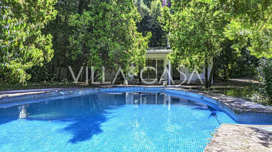 Na prodej je elegantní vila z konce 19. století s eklektickou architekturou, která umně kombinuje koloniální, klasické a moderní styly. Nachází se na parkovém pozemku o rozloze více než 4000 metrů čtverečních, osázeném vzácnými rostlinami, a zahrnuje bazén a hostinský dům o rozloze přibližně 100 m2.