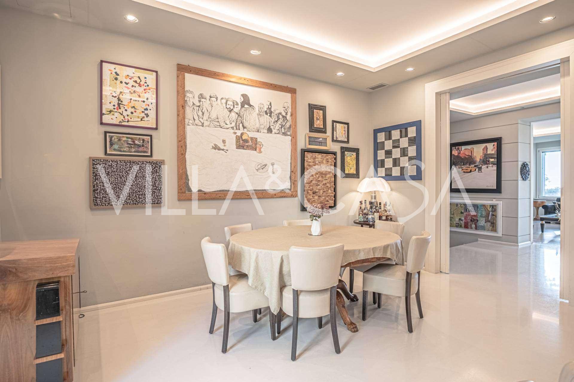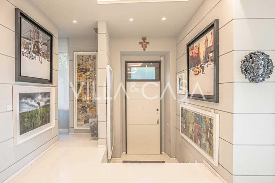 Plocha vily činí 597 čtverečních metrů a je rozmístěna na čtyřech podlažích, harmonicky propojených moderním vnitřním výtahem, který zajišťuje soukromí a vysokou úroveň pohodlí.
